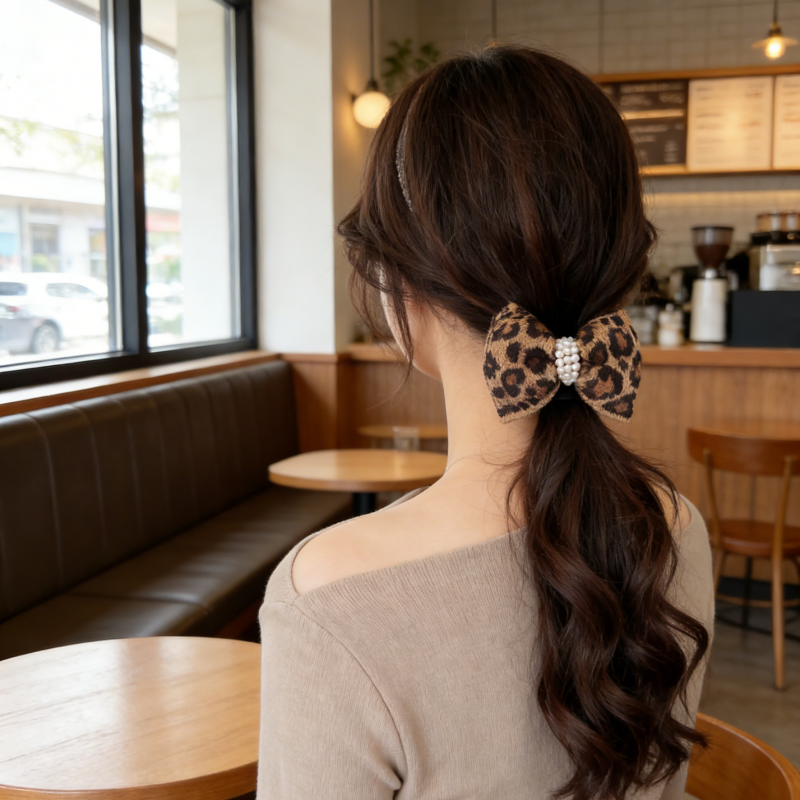 OKBA59147豹纹蝴蝶结星光气质百搭大肠发圈发绳