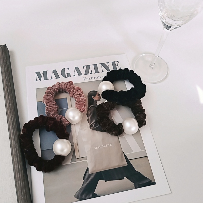 OKBA59172星空闪光星点高端天鹅绒大珍珠基础款发绳发圈