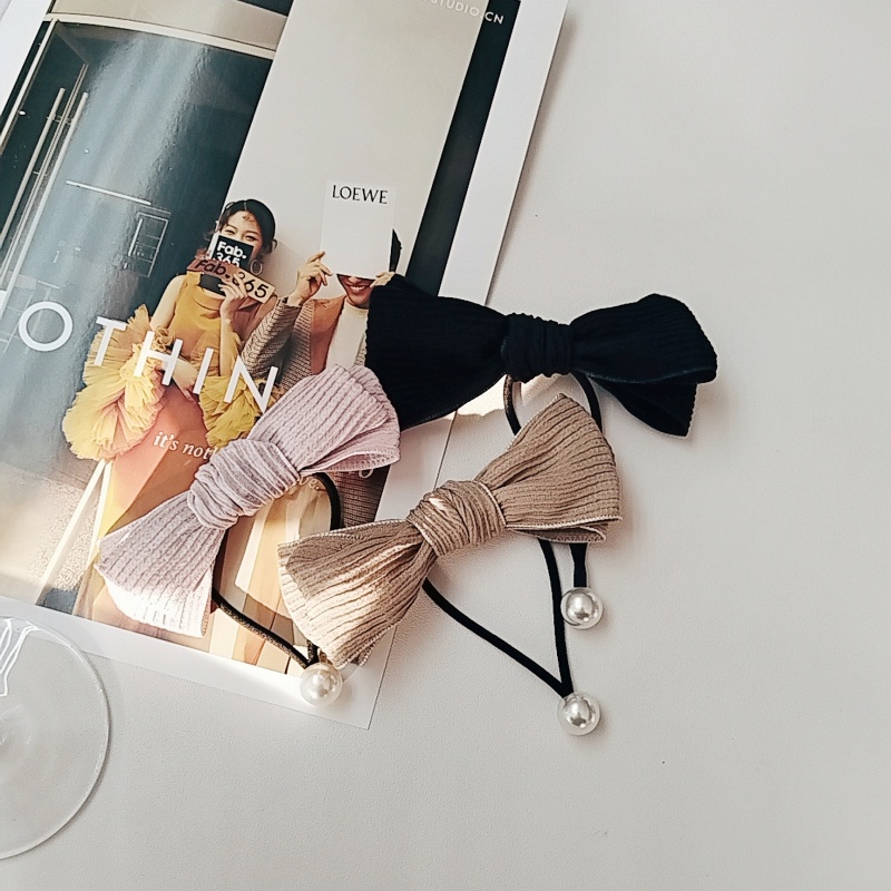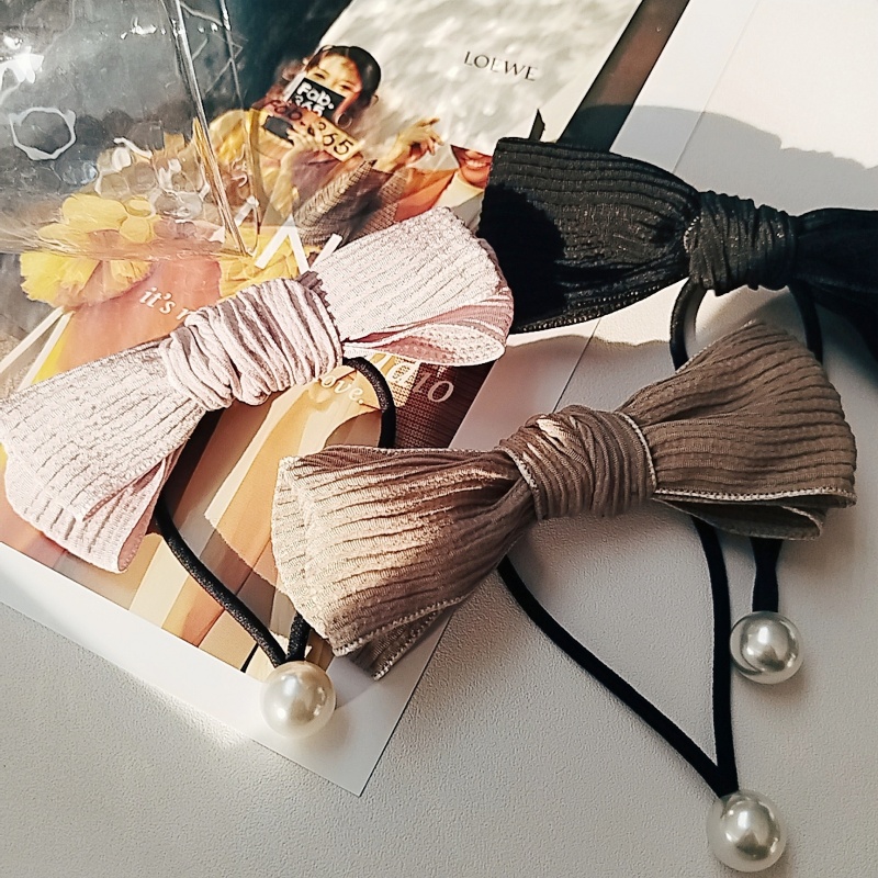 OKBA59173双层条纹肌理感蝴蝶结低调奢华皮筋发绳