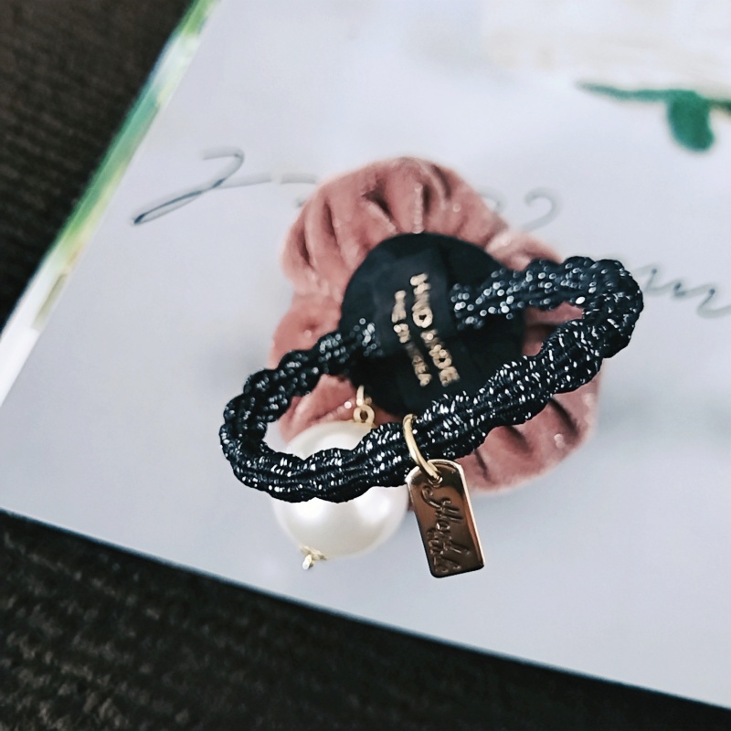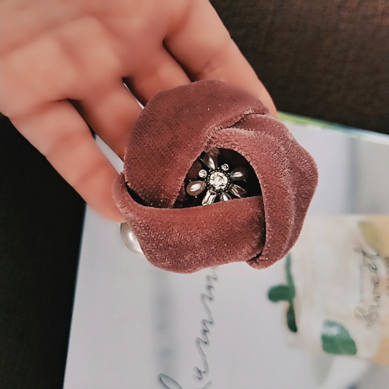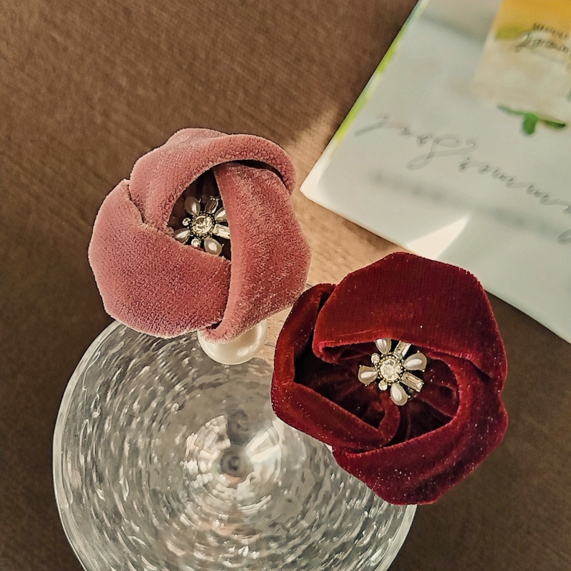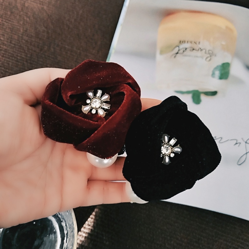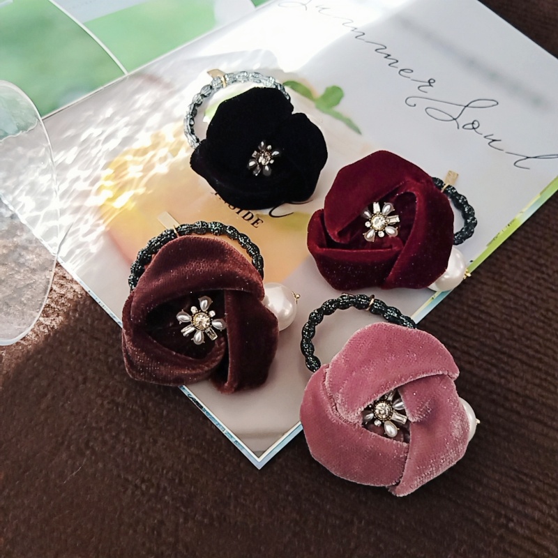 OKBA59188星空闪光星点奢华高级感天鹅绒玫瑰花珍珠韩国发绳皮筋
