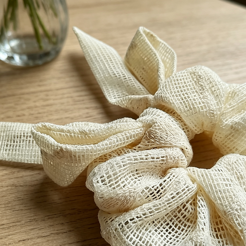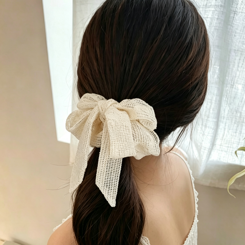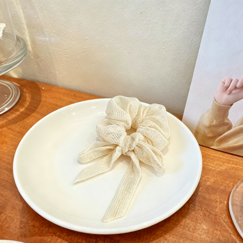 OKBA59557高级感华夫格蕾丝可卸飘带气质韩国蝴蝶结发圈大肠圈