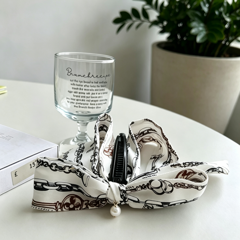 香蕉夹 国风、新中式 蝴蝶结 仿珍珠 布艺
