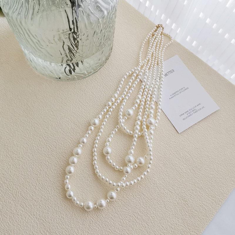 OKBA58053四层大小珠混搭颈链气质精致韩版仿珍珠项链