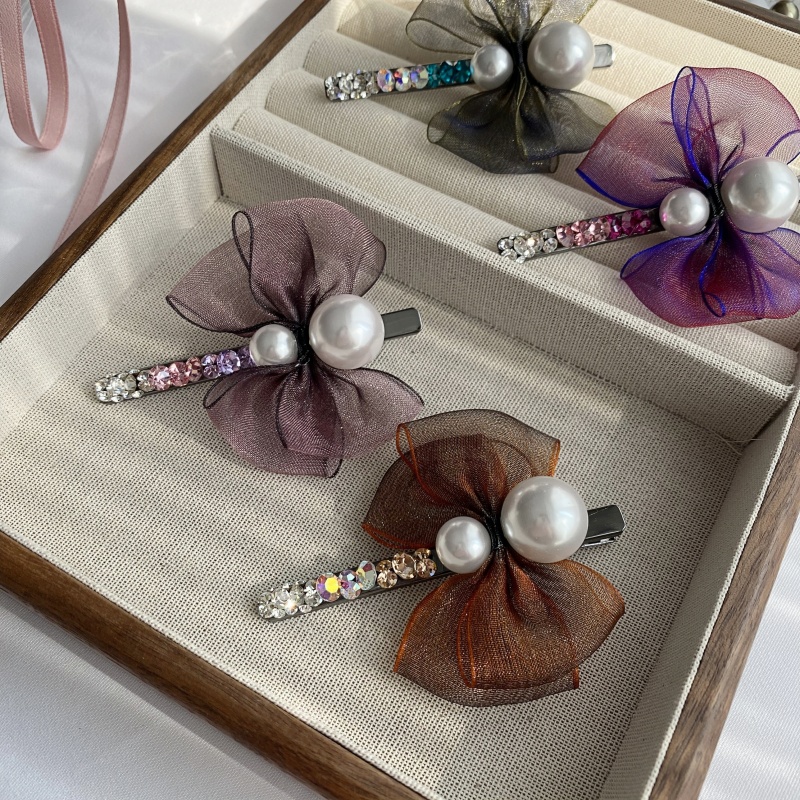 OKBA58534韩国高级感亮钻珍珠蝴蝶结鸭夹