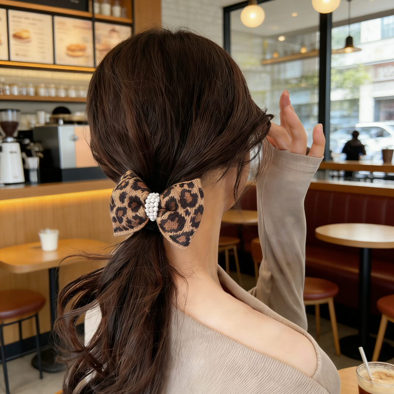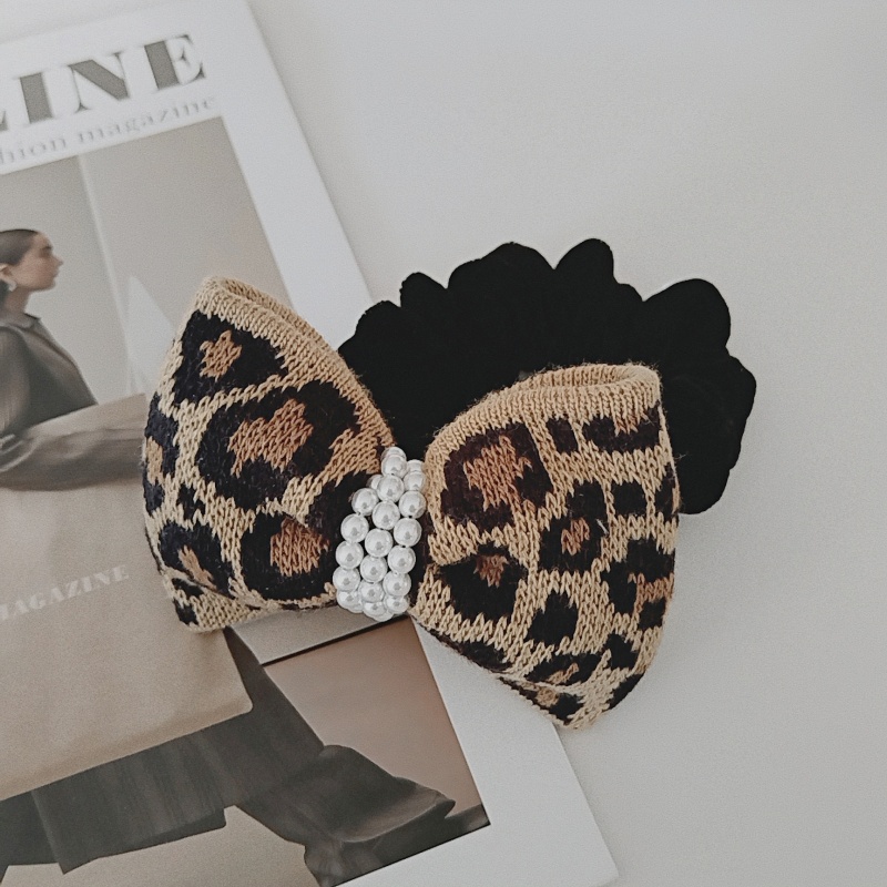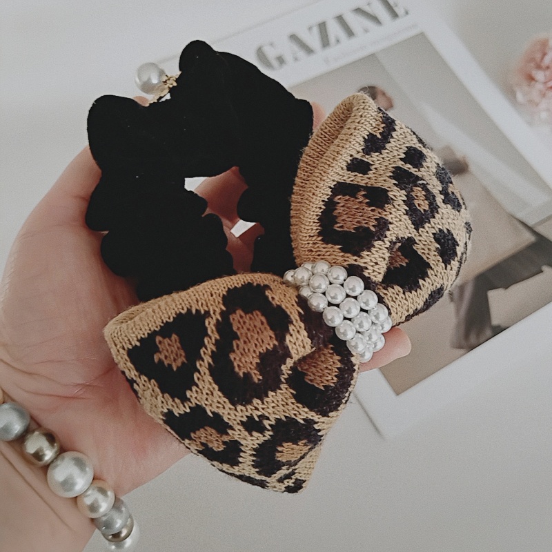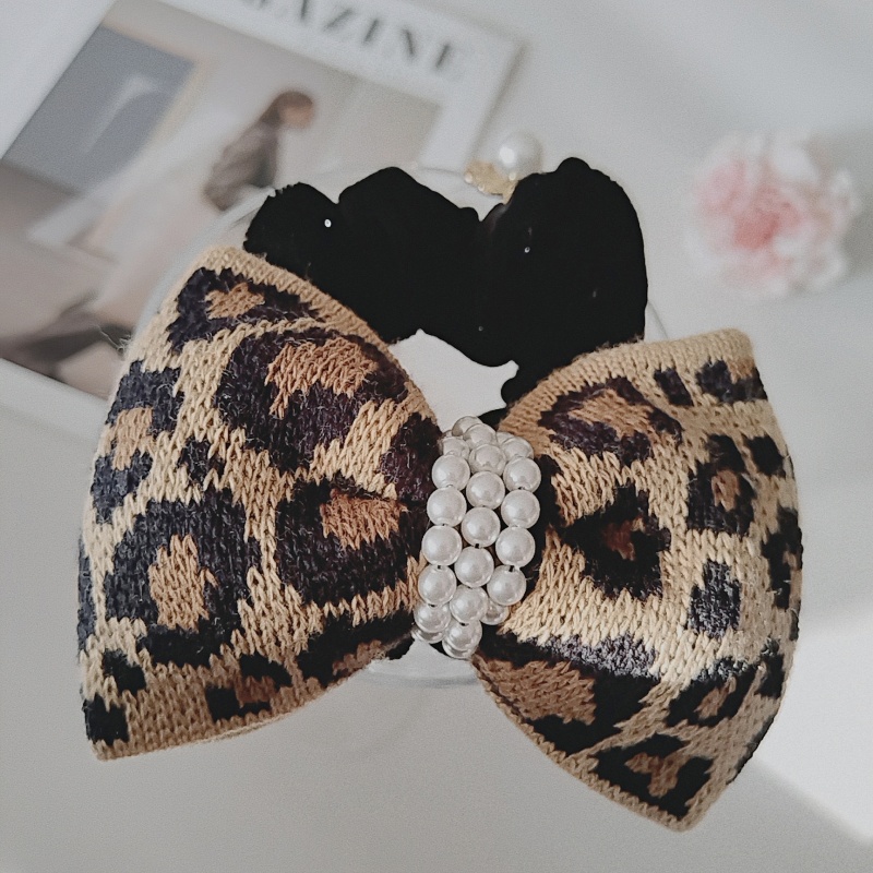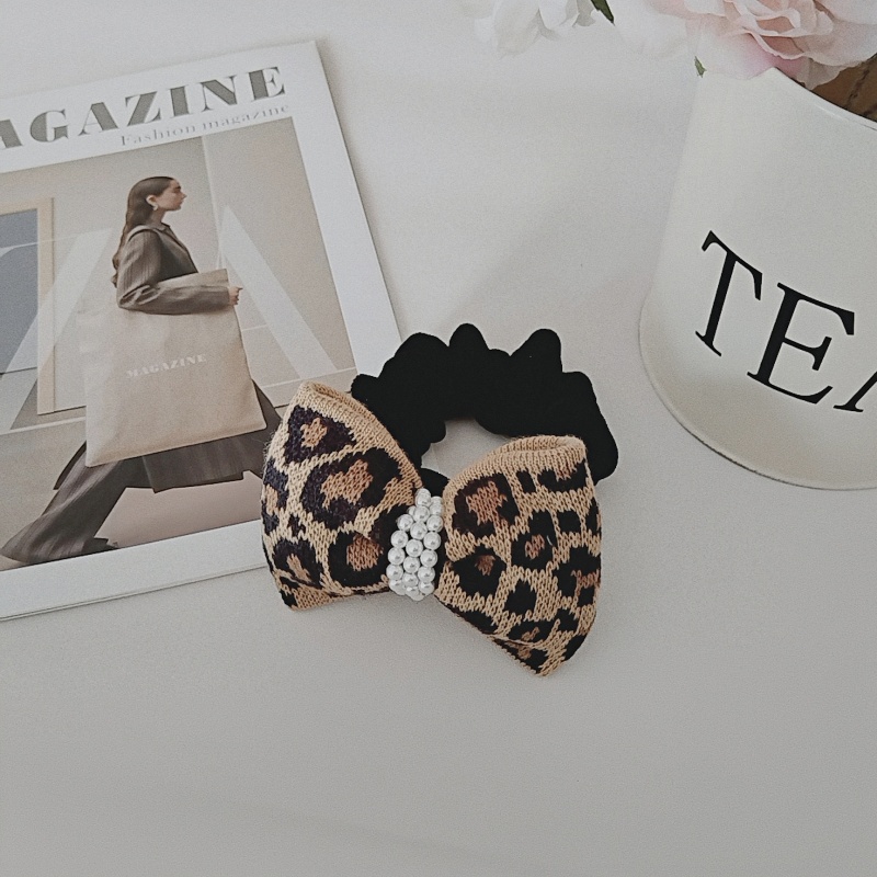 OKBA59147豹纹蝴蝶结星光气质百搭大肠发圈发绳