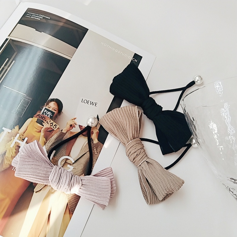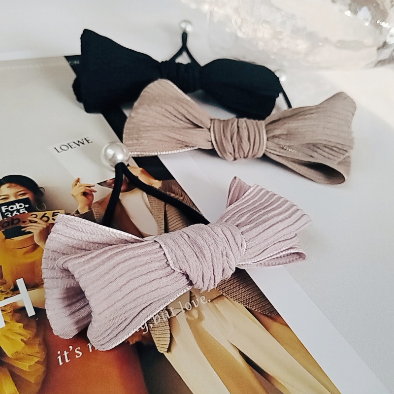 OKBA59173双层条纹肌理感蝴蝶结低调奢华皮筋发绳