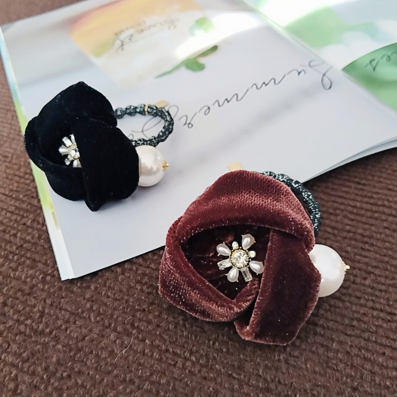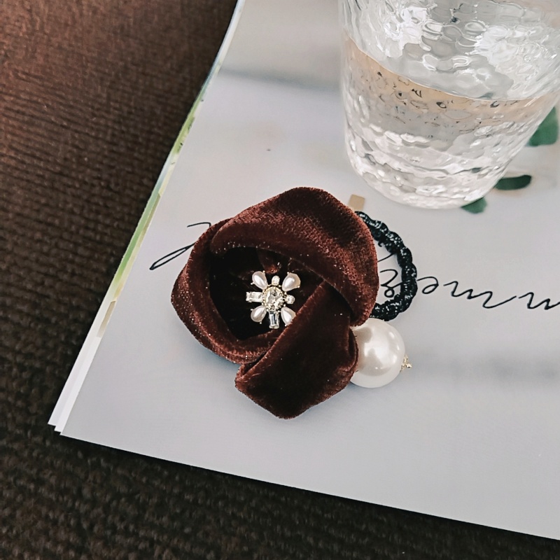OKBA59188星空闪光星点奢华高级感天鹅绒玫瑰花珍珠韩国发绳皮筋