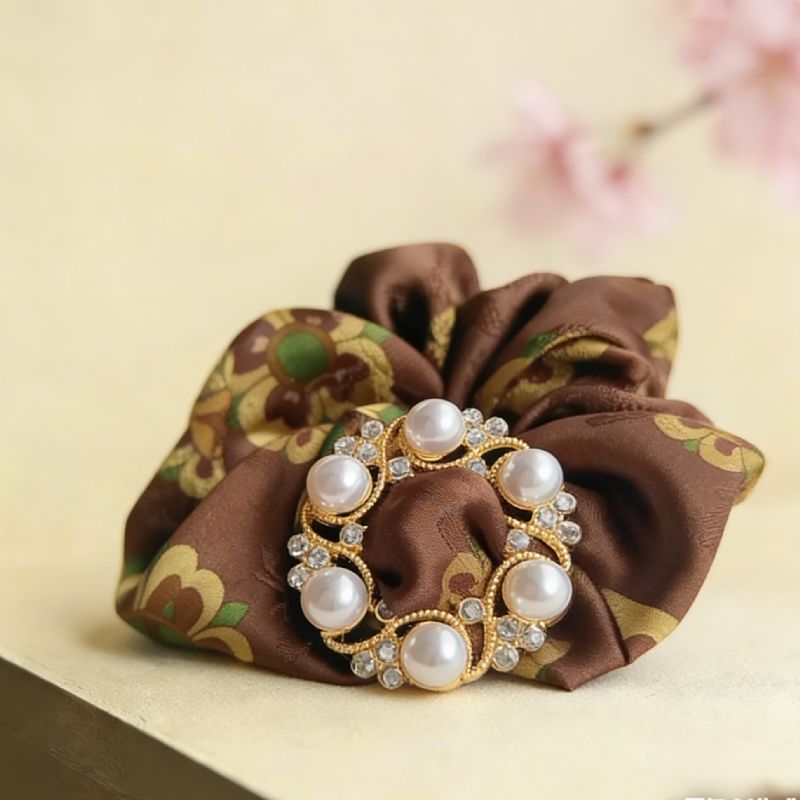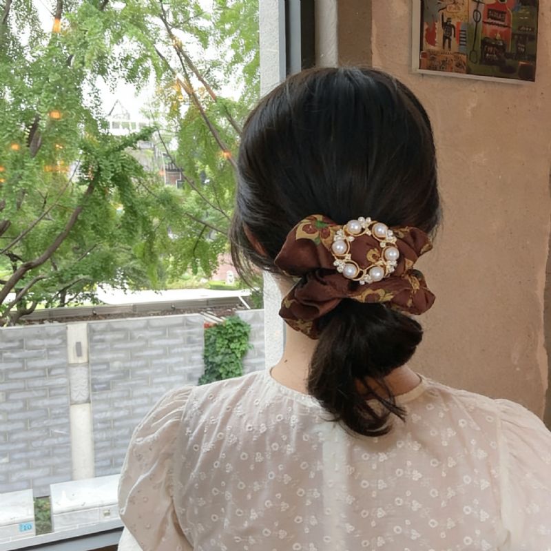 OKBA59503香云纱优雅光泽国风新中式珍珠花大肠发圈