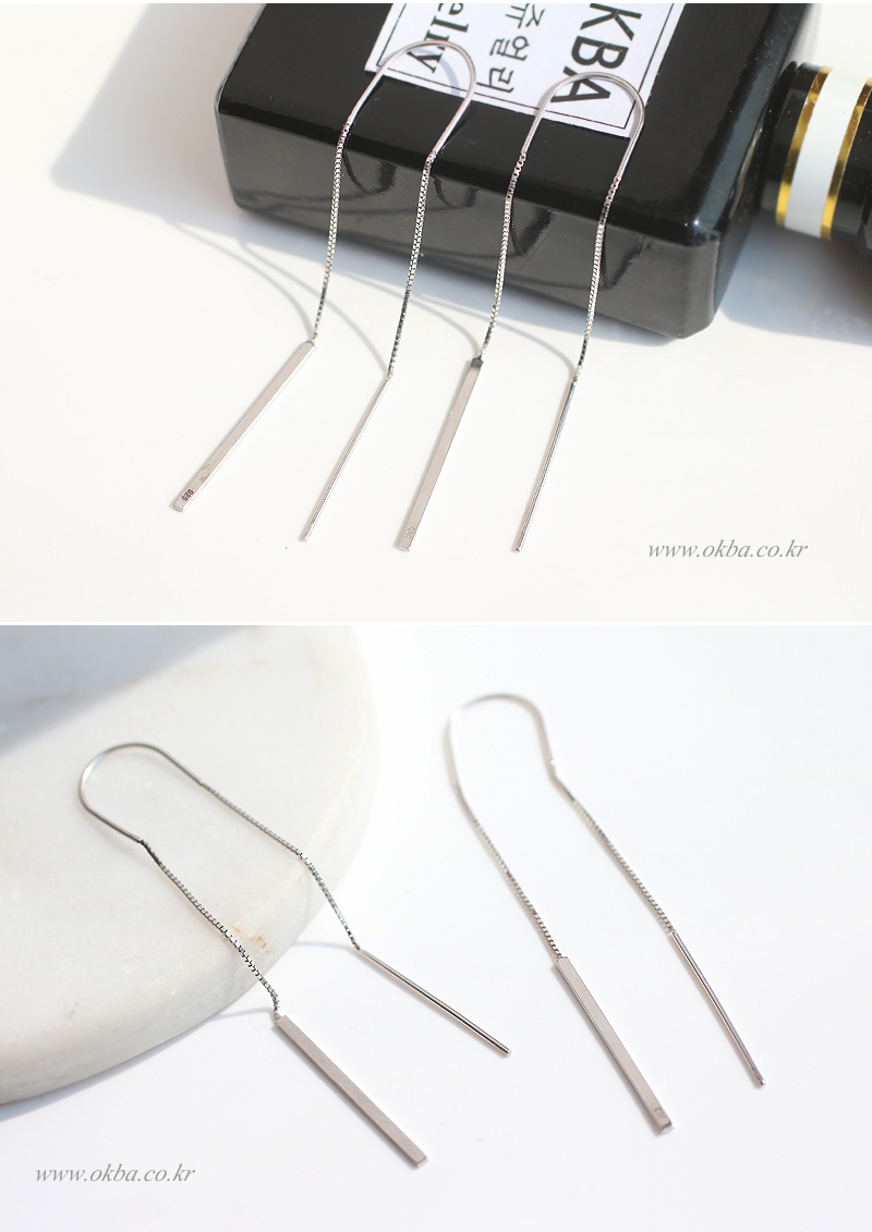 OKBA60196气质百搭时尚U形长短链925纯银电镀铂金耳钉耳饰{银饰}