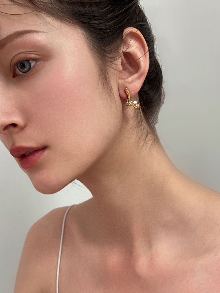 OKBA60246真金电镀欧美法式小众轻奢淡水珍珠不规则钛针耳钉耳饰