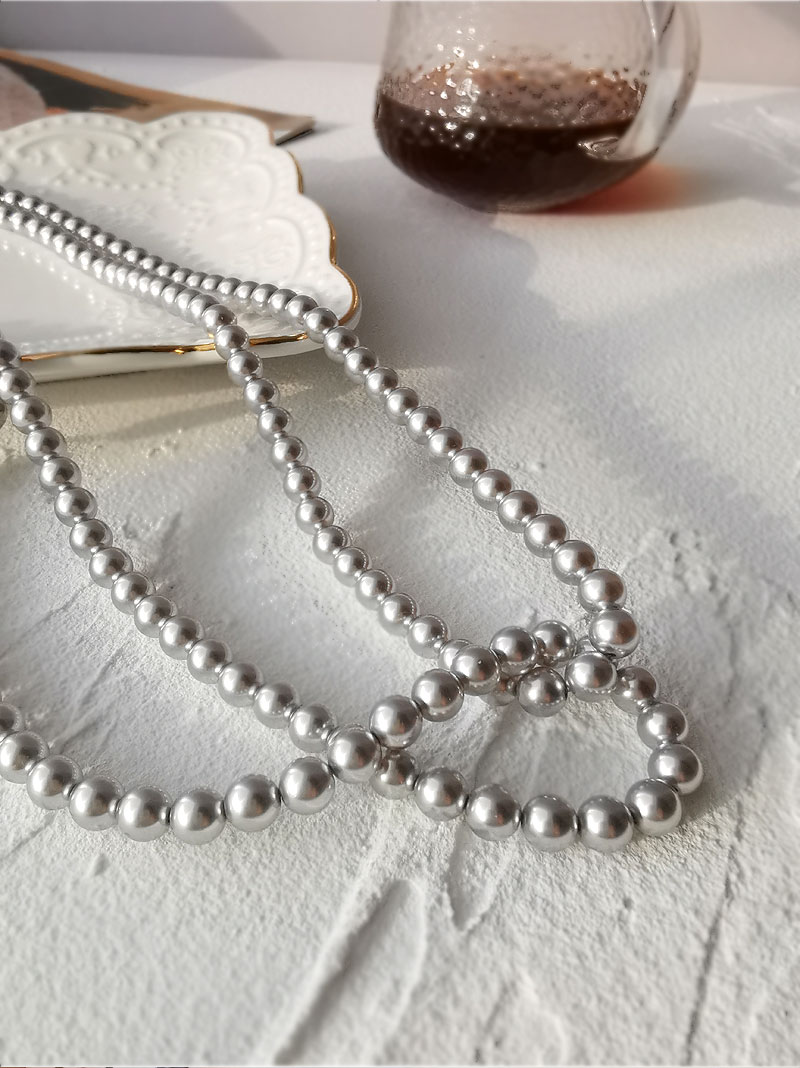 OKBA60364百搭时尚气质灰色珍珠韩版长款项链